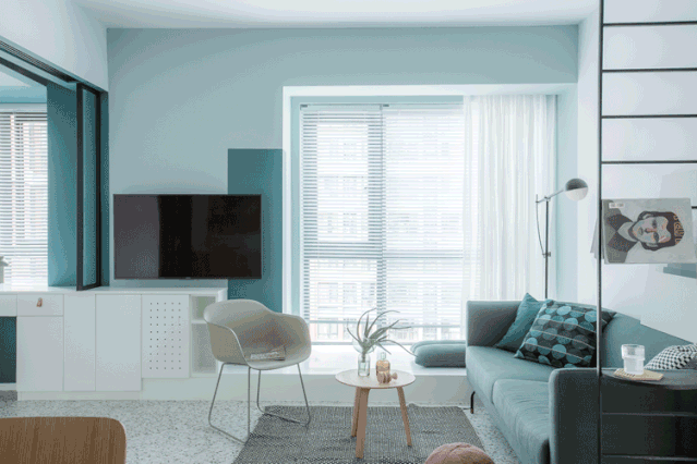 3.拆掉客厅和卧室间的隔墙,三居变两居,释放空间给客厅;