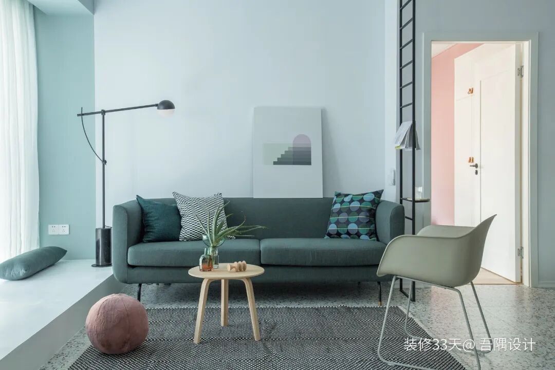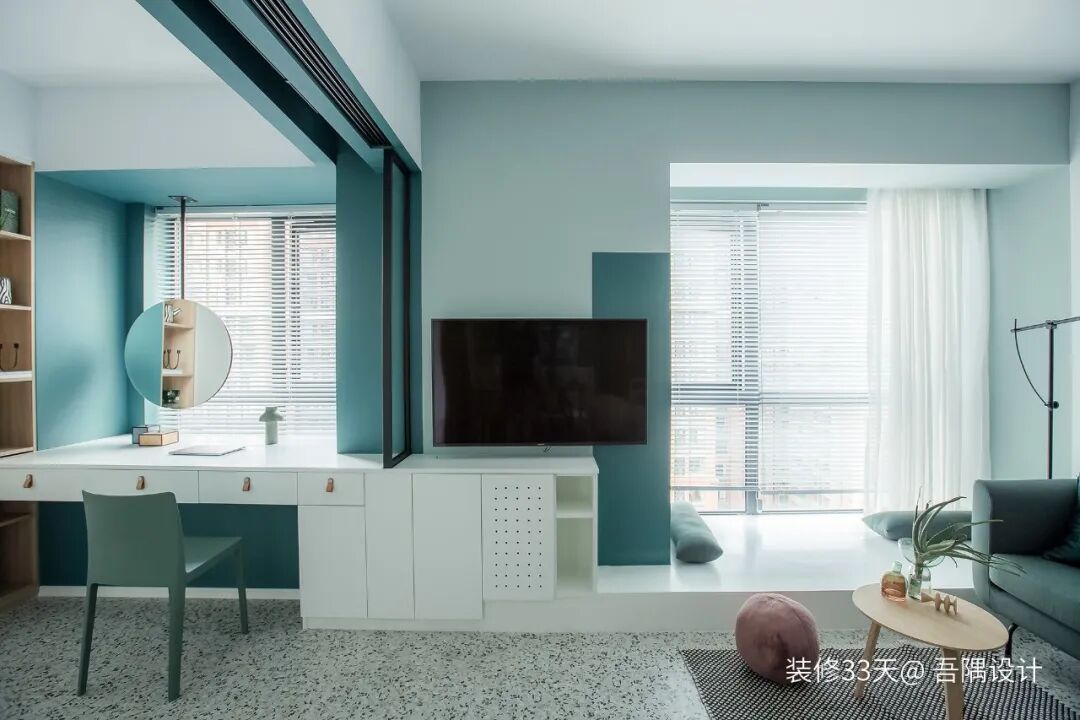 ▲ 保留了常规的沙发区,阳台设置白色地台,保证空间开阔性的同时也方便夏天铺地席纳凉