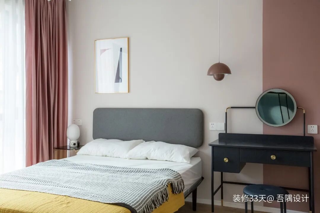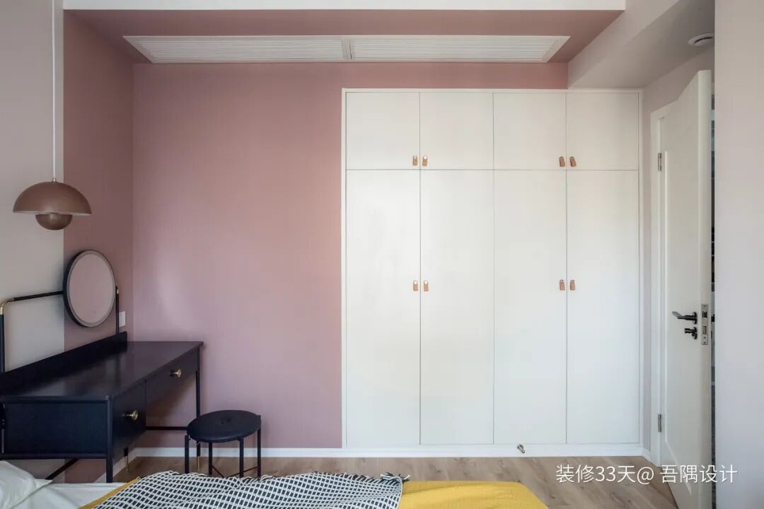 ▲ 次卧是为妈妈准备的房间,虽然妈妈偶尔来小住,但还是希望能更有仪式感,整体是妈妈喜欢的粽粉色系搭配,梳妆台也是妈妈要求的标配