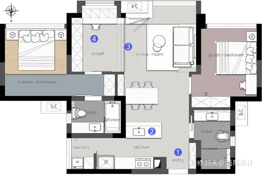 2.厨房改造后成开放式,用一个料理台作为餐厨之间的过渡;