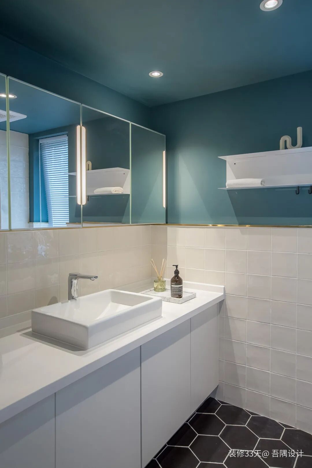 ▲ 客卫,定制整排台盆柜,结合宜家镜柜,侧面墙上设计隔板用于毛巾收纳