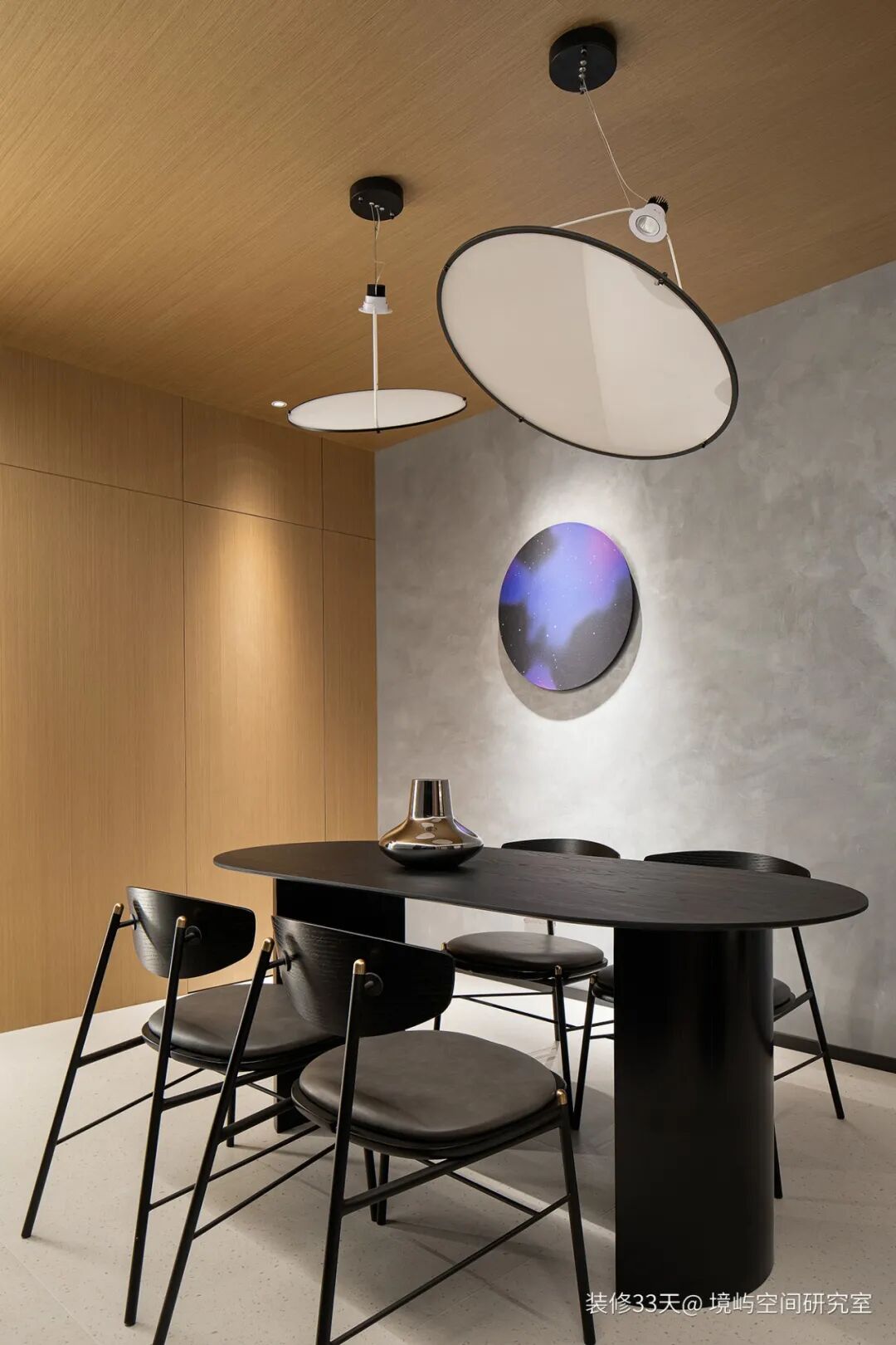 ▲ 餐厅顶将星空元素引入家中,宛如进入星辰大海,让就餐成为一场视觉、味觉、幻觉的探索体验,营造一个即封闭又庄重的用餐环境,餐厅采光比较弱,利用墙面的线形灯,提升空间亮度