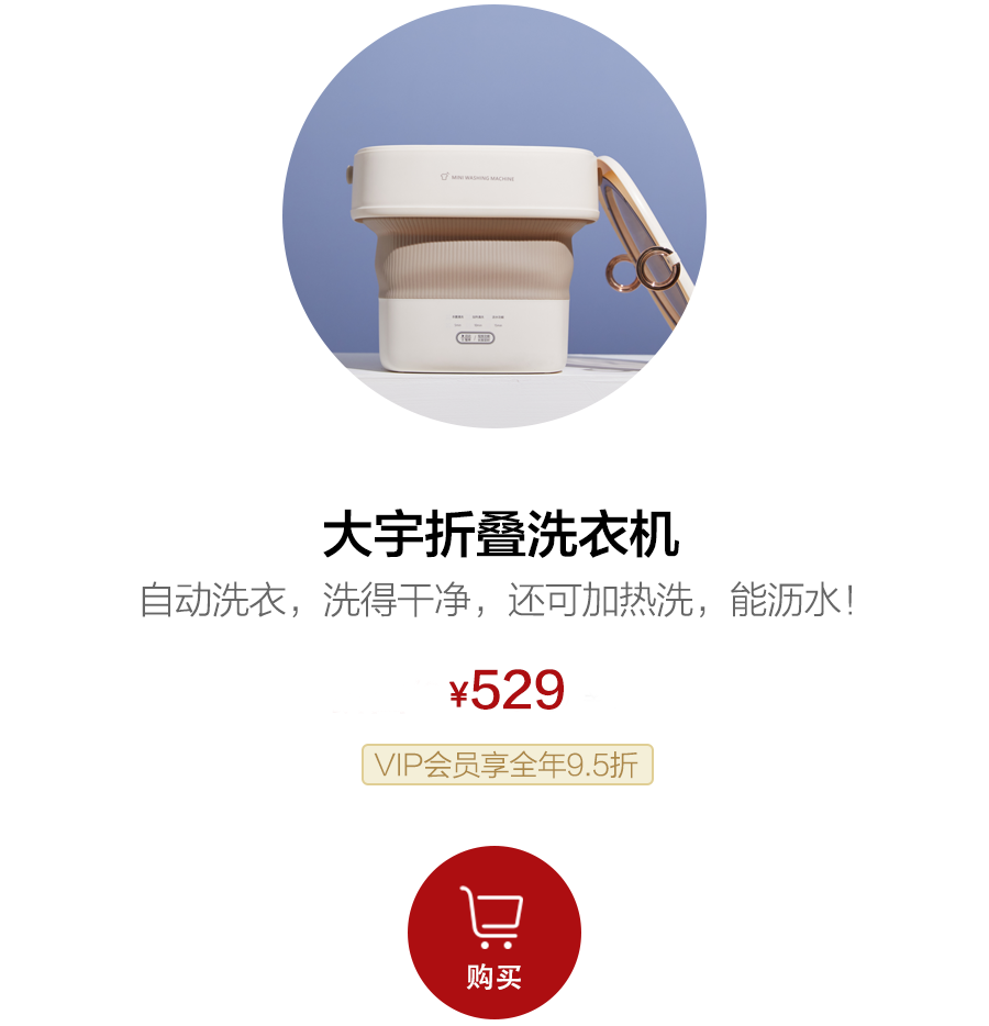 它小小一个,可以折叠收纳,放在家里不用的时候,几乎没什么存在感。不和家里的大洗衣机争风吃醋,放置起来也不给人负担,不用担心占地方的问题。说到折叠洗衣机,其实之前市面上就有,但体验感还有待提升。例如:不能杀菌、无法加热、无法沥水等等,这也是很多人迟迟不肯入手的原因。而这次大宇带来的新款,可以说一次用心地取长补短,做出了一个折叠洗衣机的Plus版,可以帮你把衣服洗得更干净!
