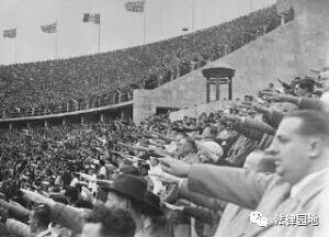 1936年8月1日,在德国柏林举行第11届奥林匹克运动会开幕式上,希特勒宣布开幕。会场上飘扬着纳粹旗帜,德国运动员通过主席台时,行纳粹礼,高呼“万岁——希特勒!”
