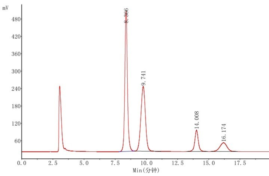 色谱峰:1.果糖 2.葡萄糖 3.蔗糖 4.麦芽糖