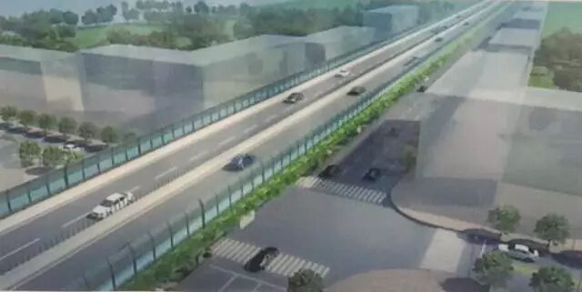 该道路设计时速60km/h、桥面宽度约22.7m,在既有箱涵的东侧新建双向4车道跨线桥梁,标准桥宽18.5m。