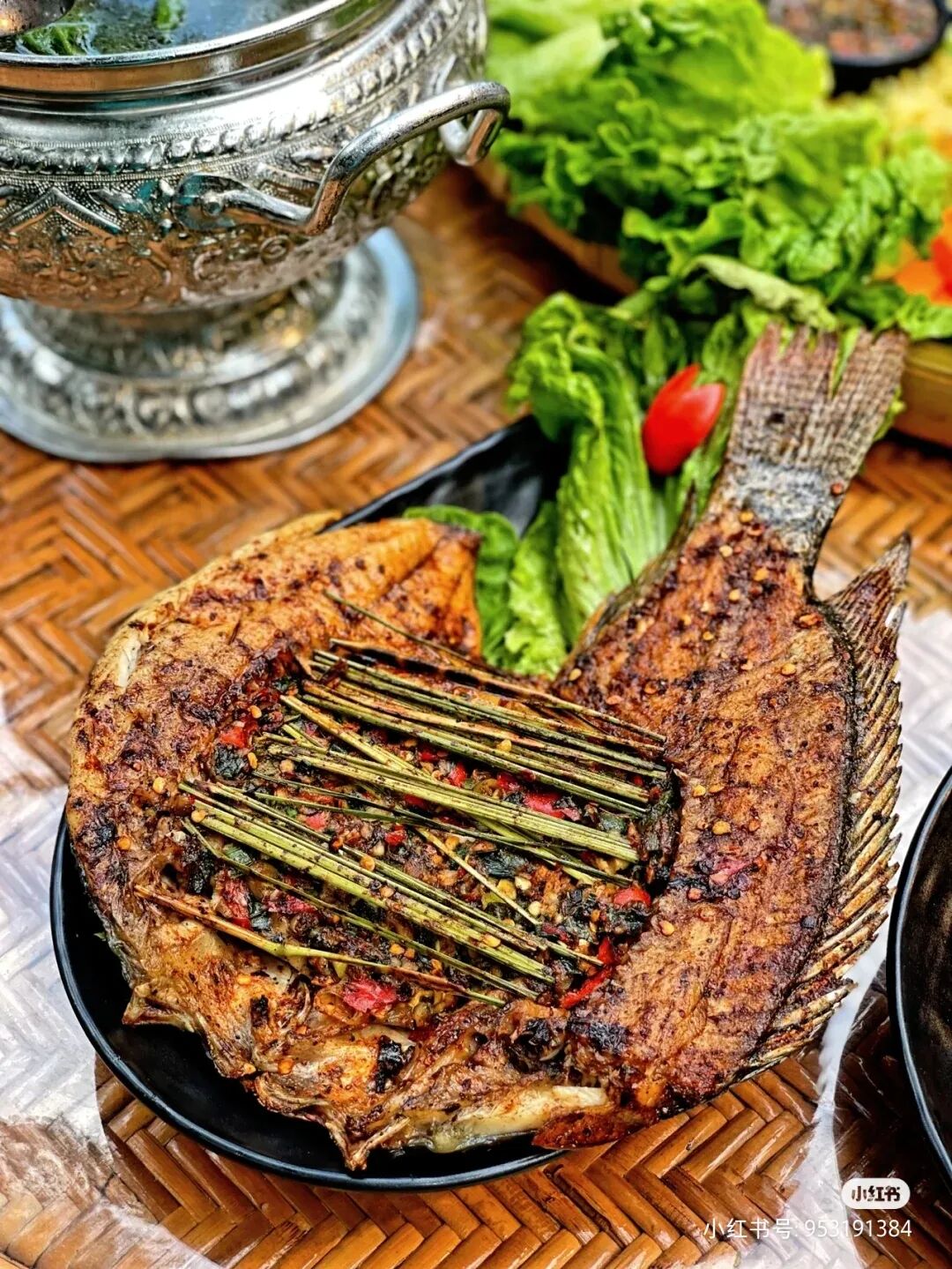 香茅草烤鱼、烤鸡、油炸青苔