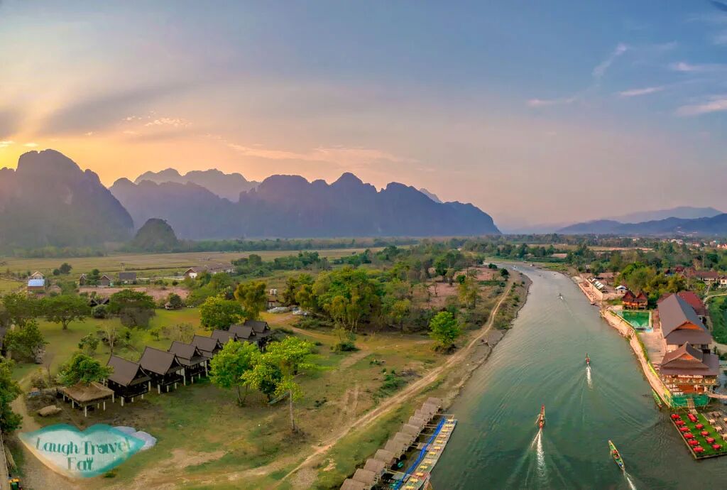 万荣有着老挝小桂林之称,典型的河流与山丘地貌。这里可是欧美人的聚集地,可见人家热爱大自然的程度,由于这里算是欧美人的聚集地,整个万荣都有很多休闲的清吧,喝上冰冻的老挝啤酒,品尝一下特调的鸡尾酒,在这朴质的环境下真的别有一番滋味。