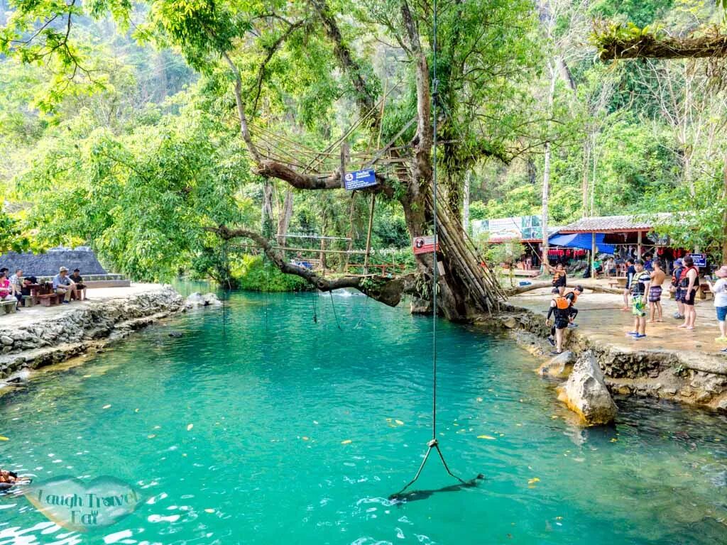俯瞰全城的方式有很多种,最浪漫的方式绝对是乘坐热气球俯瞰万荣了。在缓慢升空的过程中,你能看到脚下的城市慢慢缩小再缩小,最后连山脉河流都迷你得好似玩具一般大小。等到阳光在地平线上初露光芒,整座城市才好像被唤醒了一般迷人。►在蓝魔之泪般的泻湖上纵情一跳