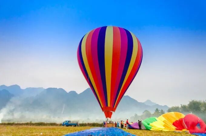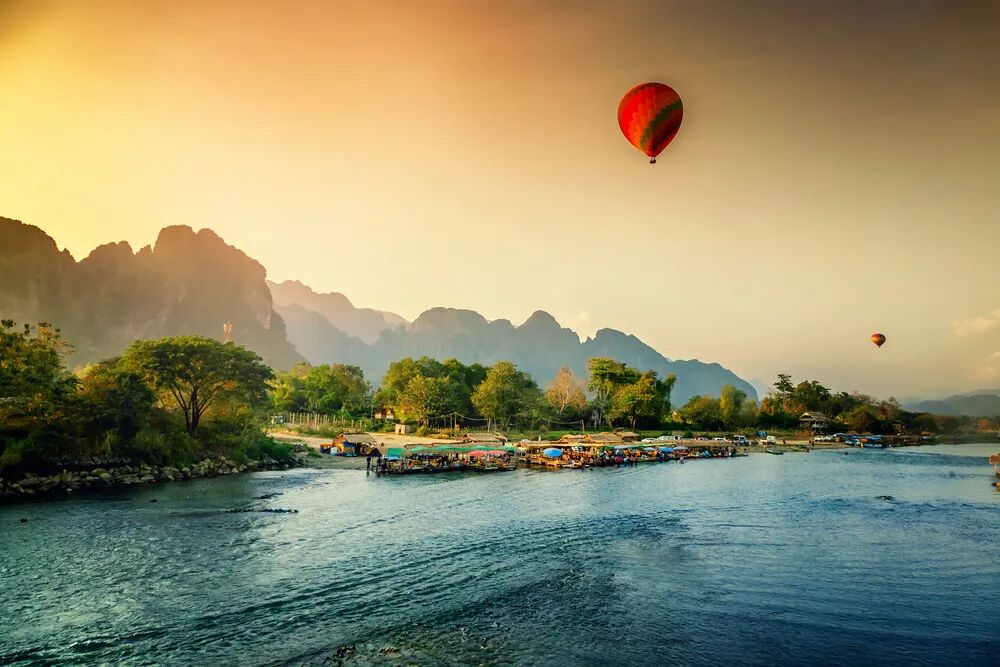 万荣把自己分了数个区域,就像十年前中国乡村的生产小组,分区的好处就在于,你可以为自己的来一次准确的定位。在人们聚集的地方就有街道,沿着河边的街道总被赋予旅游的特色,无论是那些漂流舟租赁点,还是路边为了装饰摆上的花儿,都为单调的道路平添了不少属于自己的光辉。►乘坐热气球俯瞰城市全景