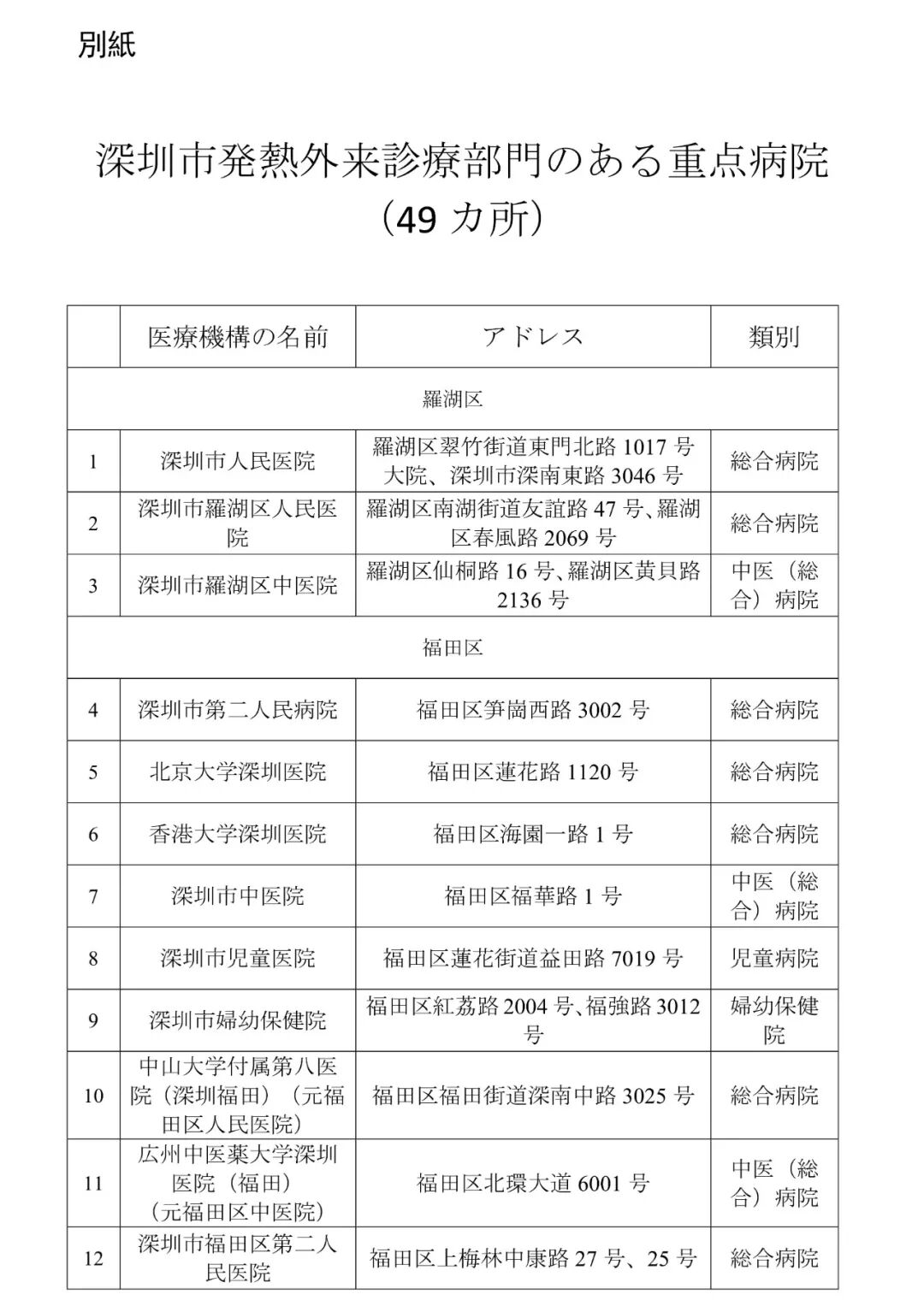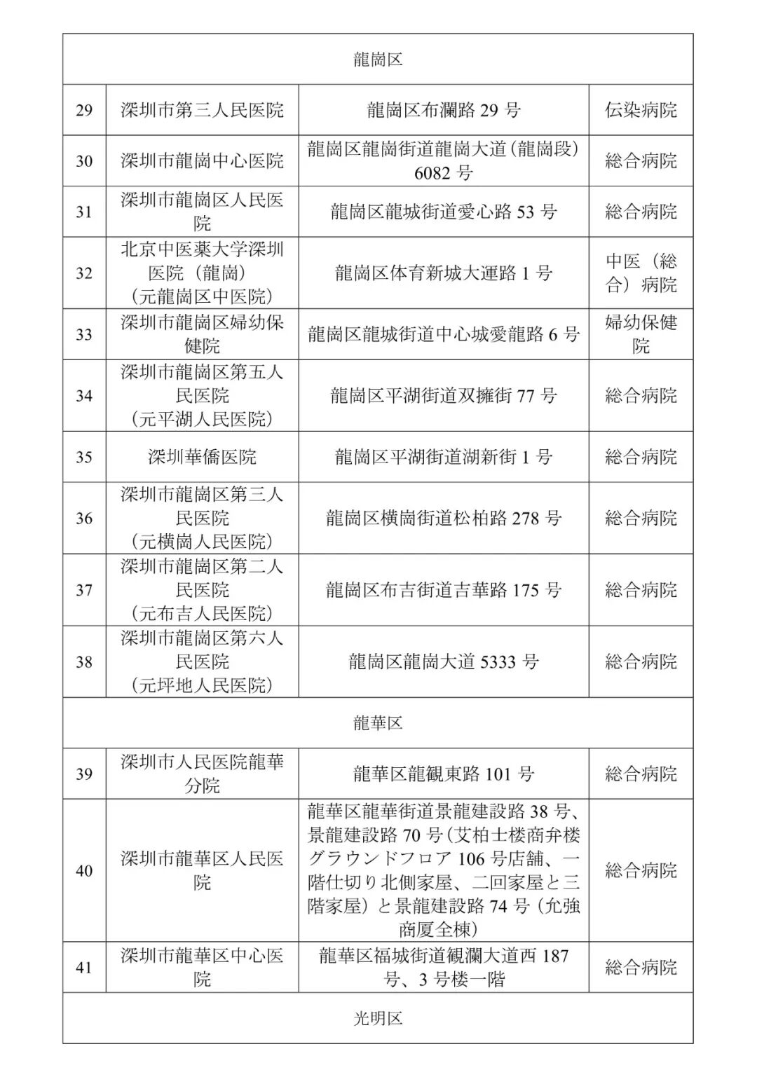 1.すぐに近所の指定治療病院の発熱外来診療部門で受診すること(深圳市49カ所ある発熱外来診療部門の情報は別紙をご参考ください)。特に子供、お年寄り、妊娠中の方、基礎疾患のある患者は一刻も早く治療を受けるべきです。