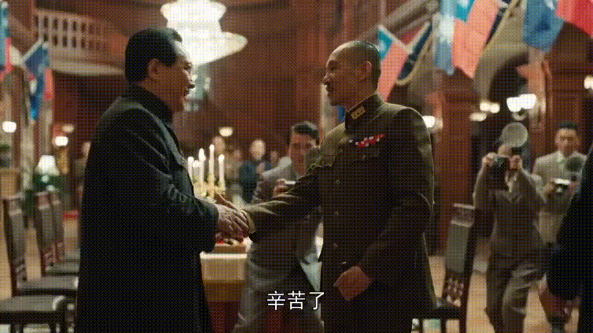 立马用手固定住晃动的水杯。来源/电视剧《大决战》片段