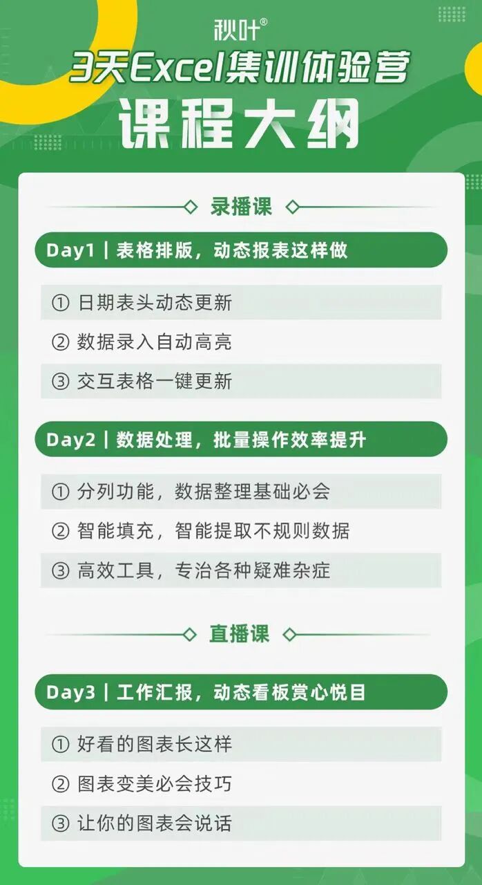 我们专门邀请了自家明星讲师 @秋叶 Excel 团队的拉登老师,给大家带来为期 3 天的《秋叶 Excel 集训营》,用 3 大学习模块,每天半小时,教你玩转 Excel!