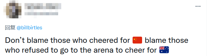 但这些在澳华人为中国队加油的阵阵叫好声,似乎让某些人觉得“刺耳”了。昨晚中国女篮战胜澳大利亚队后,澳大利亚广播公司(ABC)记者比尔·伯特尔斯(Bill Birtles)在个人推特上称“现场观众的反应听起来像是中国队的主场比赛”。同时他还点赞了一条质问“在澳华人为何为中国队加油,却不为澳大利亚队加油”的推文。