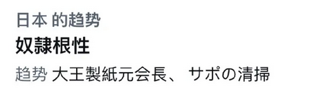 当晚,他所说的“奴隶根性”一词就登上了推特日本趋势的热门话题,点燃了日本网民的热烈讨论。