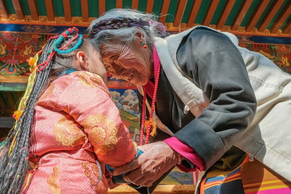 今年,西藏农家年和春节“巧遇”同一天,习俗虽不同,但年味皆浓。从县城买来的年货,一家人制作的切玛和卡塞(油炸面食)等传统供品和食品,纷纷摆上了桌。第四代的孩子们,也换上了崭新的藏装,头戴绿松石点缀的头饰,依偎在祖奶奶次旦的身旁。