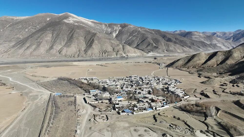 这是平拉家所在的西藏日喀则市拉孜县扎西宗乡杂村(1月22日摄,无人机照片)。新华社记者 晋美多吉 摄