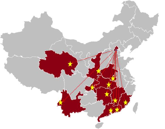 ▲ 11个沃土计划实践基地:广东揭阳、青海海东、云南腾冲、陕西商洛、重庆新鸥鹏集团、河南羚锐集团、湖北咸宁、湖南长沙、江西赣州、福建泉州、广州南沙自贸区