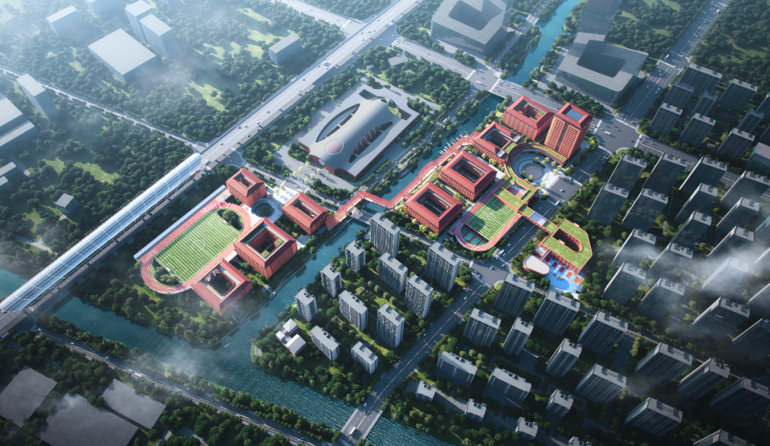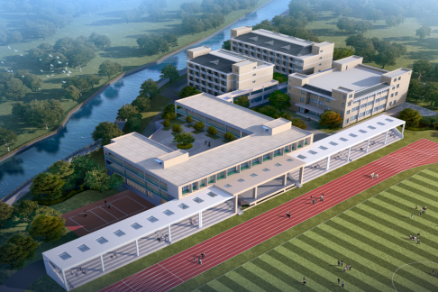 项目位于良渚街道杜甫村,与中国美术学院良渚校区隔河相望。项目总用地面积约6.1万平方米,总建筑面积约7.5万平方米,设计规模54个班。