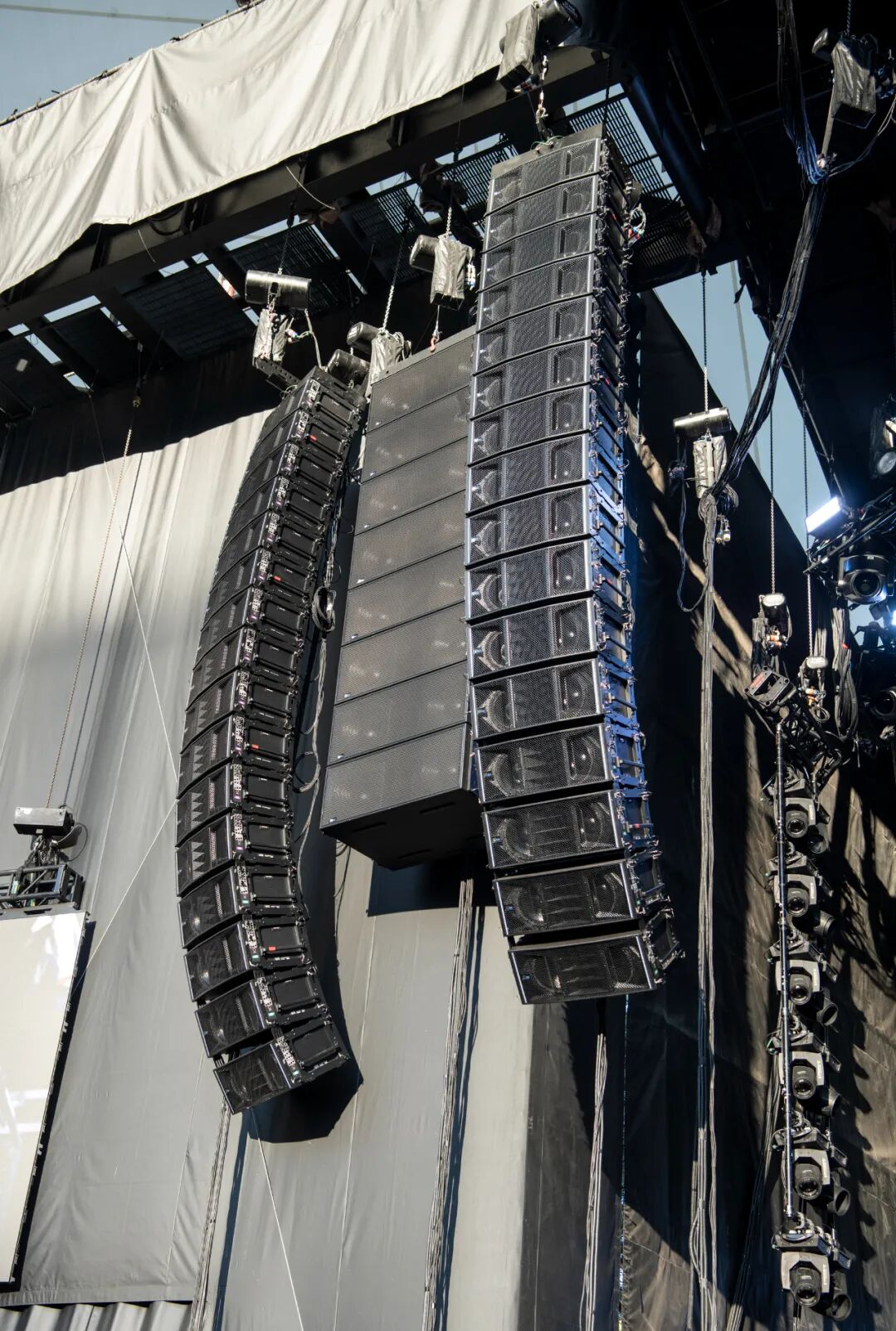 他说:“我们使用了与去年 LEO 数量相同的 PANTHER,但尺寸和重量的减少使我们能够携带更多超低频音箱并更有效地部署装配,我们能用额外的卡车空间装 VLFC 音箱,而轻量化的 PANTHER 使我们在相同的总限重情况下,轻而易举地在体育场内吊挂更多的超低频阵列。