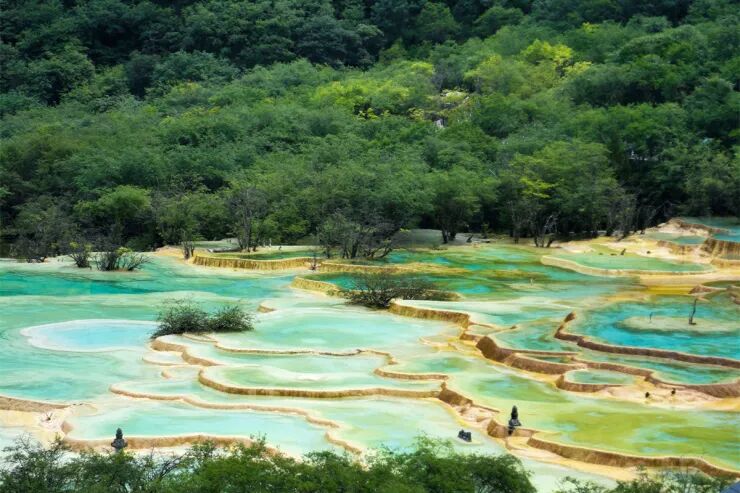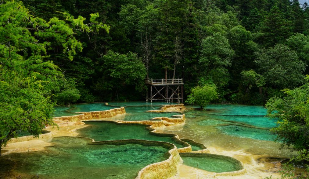 这里大量色彩多样、结构百变的钙化池可能会让你误以为来到了人间仙境。森林里的钙化池,形成了金银碧透的小水池,美得让人心醉,不多说,上图~