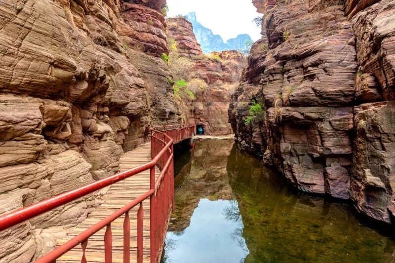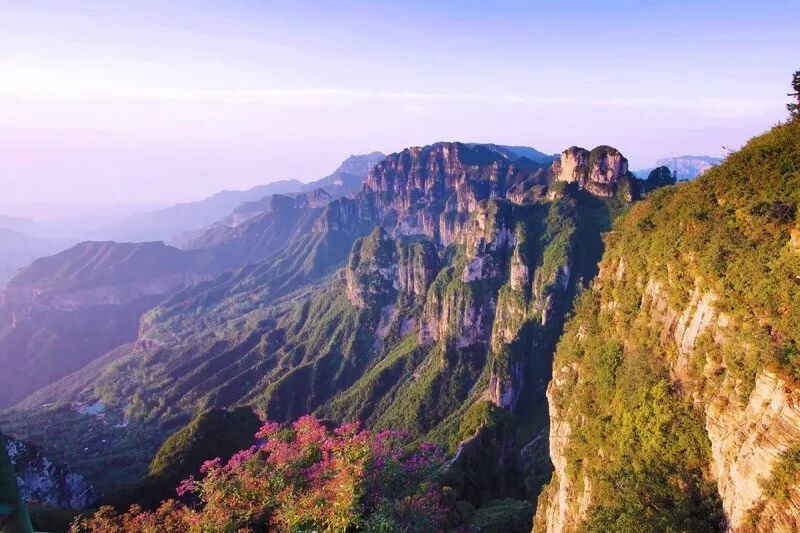 高原自这里华丽而突兀地转向平原,亿万年前的地质运动形成了太行山脉那些落差巨大的垂直崖壁和深不可测的陡峭峡谷,自山巅向下俯视,绝壁万仞、气场全开,独特的红色嶂石岩在太阳照射下披上一层夺目的金光,更是一种摄人心魄的美。正如《中国国家地理》所说:这是一种水平方向横向展开的雄伟。无需远走科罗拉多,在我们的大美祖国,你就能看见这荡气回肠的峡谷风光!虽然惊世骇俗的风景是太行山的名片,但造物主的安排总是另有深意:陡峭的太行山犹如一道屏障,横陈在黄土高原与华北平原两大中华文明发源地——河南与山西之间。