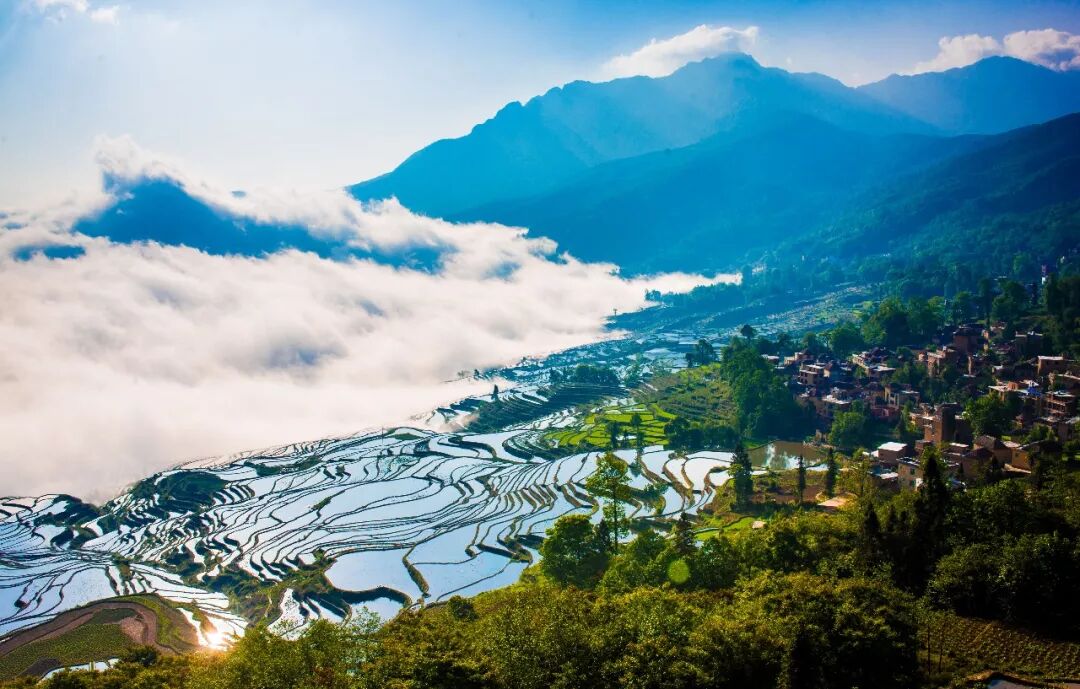 在元阳,遇见“灌水期”最水嫩的梯田盛景,如果人品够好,我们或许还能邂逅一场梯田日落,夕阳的余晖为梯田染上一层金红。而除了观景台的登高俯瞰,第二天我们还将走入田间,体味哈尼族坚守的农耕文化,又是一种别样的体验。