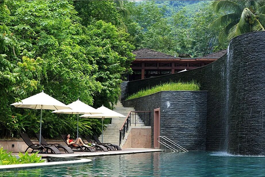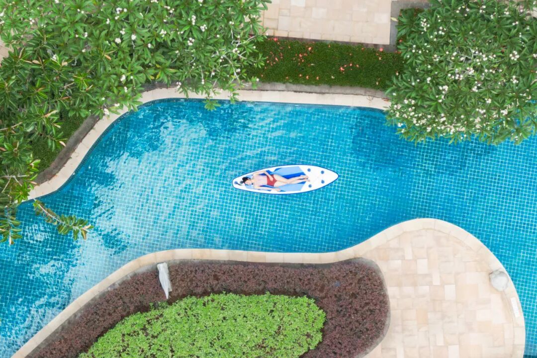 还没完!这座酒店还有着高颜值无边镜面双层泳池,在雨林环抱的酒店晒晒太阳,游游泳,舒服~