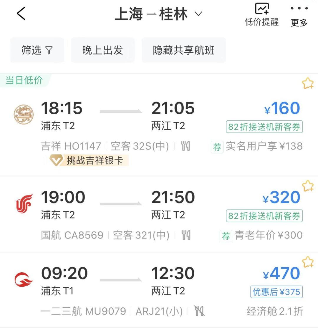 最近飞桂林的机票也是非常便宜!以上海为例,节后直飞¥160起~还等啥呢~~~