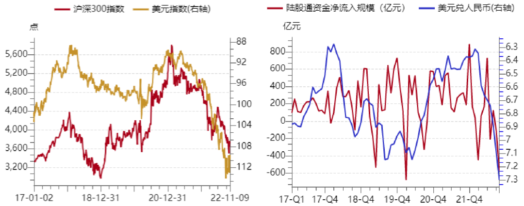 ▍图7:美元指数或已见顶,陆股通资金回流,沪深300将受益