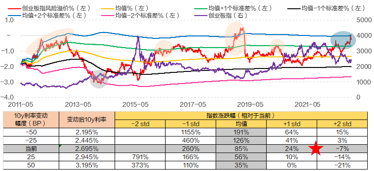 ▍图4:创指风险溢价水平在均值+2个标准差附近,指数处于底部