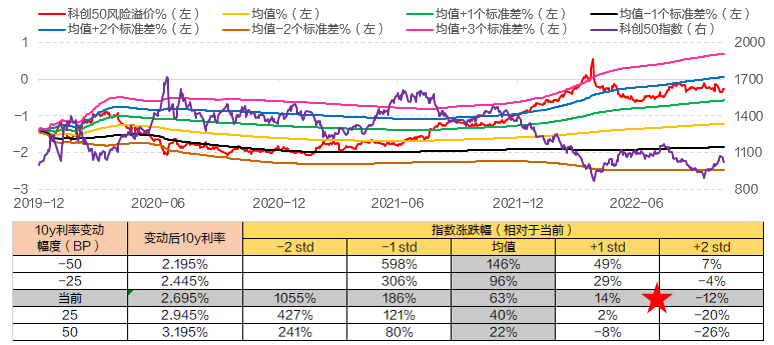 ▍图5:科创50风险溢价水平仍处于高位,指数处于低位