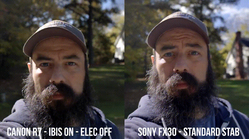 EOS R7和FX30都内置了图像稳定系统,并搭载了增强稳定的算法模式。Josh实测了手持静止与步行状态下的稳定性。事实证明,EOS R7的防抖更胜一筹。