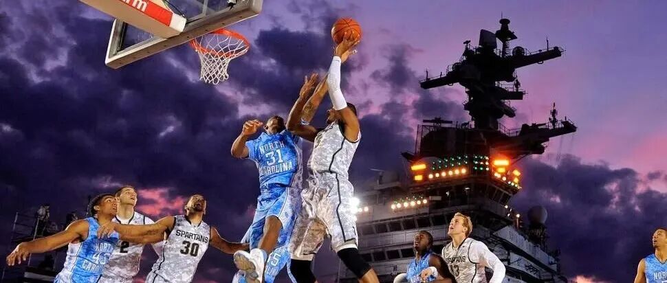 会玩:动用25个转播机位,还把现役航母改造成了篮球场