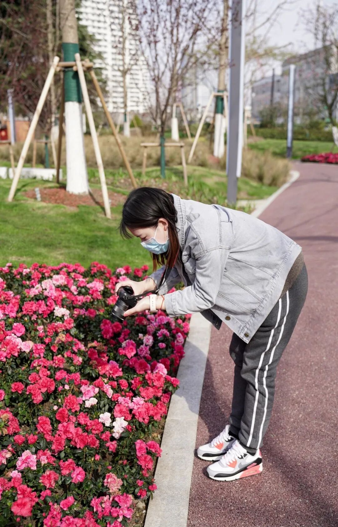 在曲阳公园,已有不少市民先睹为快,带上相机记录下这浪漫一刻。