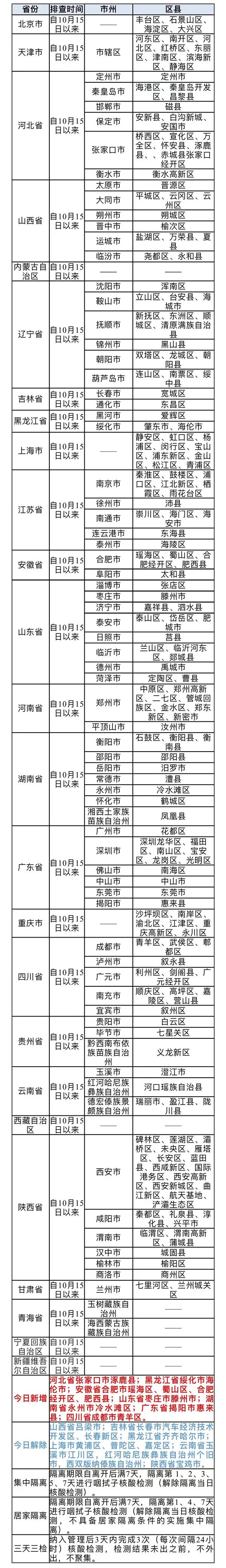 (中、高风险区具体地点可通过“国务院客户端”微信小程序查询)