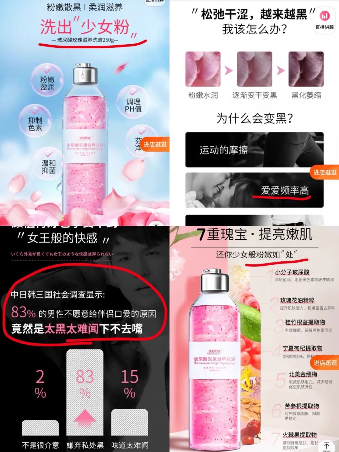 2022年5月17日,一名为“@迷惑新闻大赏”的微博大V发布妇炎洁宣传文案侮辱女性的投稿。投稿所见的妇炎洁广告写道,“中日韩三国社会调查显示:83%的男性不愿意给伴侣口爱的原因竟然是太黑太难闻下不去嘴” “运动的摩擦、爱爱频率高、爱穿紧身裤等原因都会加速色素的沉淀,让私处肌肤暗沉发黑”。称使用其私处洗液后,可以“还你少女般的粉嫩如‘处’”,引发网友热议。