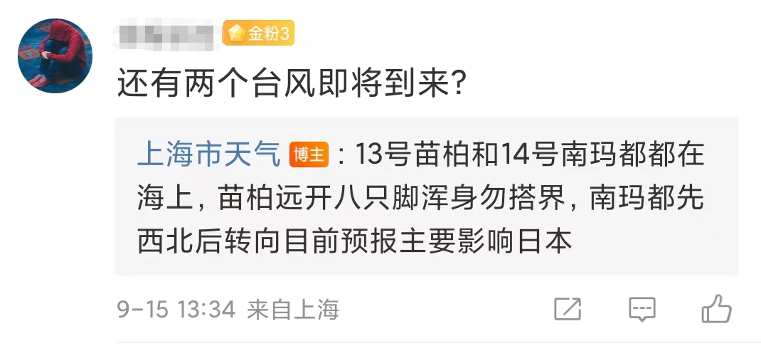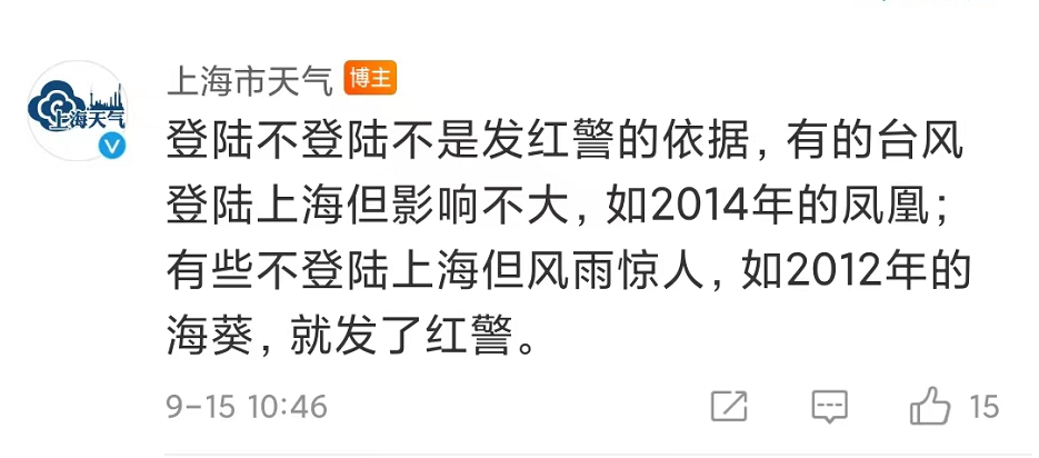 上海市气象局则在留言区回应