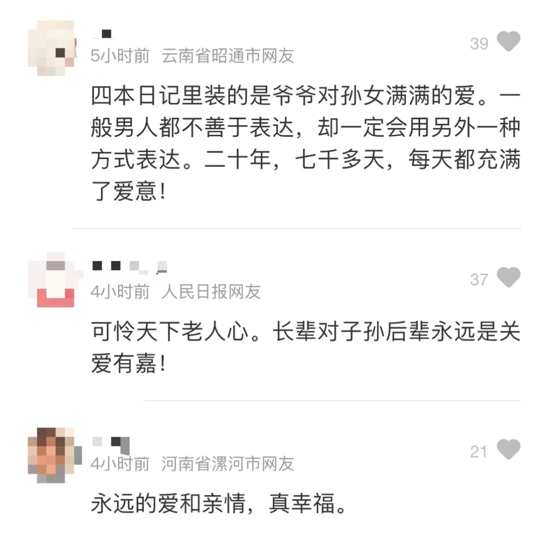 爷爷记下了陈潞成长的一点一滴,自己也在不经意间就老了。读完日记后,陈潞拍下了部分内容,加上她与爷爷的合照,做成视频发到了网上,引起了很多人的共鸣。现在,陈潞就像爷爷关注自己成长时一样,不愿错过老人晚年的一点一滴,祖孙俩的电话变多了,还约定每周都一起喝早茶。陈潞:“我有爱人与被爱的能力,这些都是我家里人赋予我的,然后也想着要珍惜我现在拥有的。”不少人都有记日记的习惯。陈潞比大部分人都要幸福,因为她的日记,是从一出生就开始了。这里的每一个字,都记录了陈潞的成长,字里行间,都能读出爷爷的爱。这本日记,不仅对陈潞来说很珍贵,对爷爷来说更是,所以爷爷自己留了底稿,给了陈潞一份手抄本,保证这份属于爷孙俩的日记,能够一直保存下去。爷爷为陈潞记日记;现在陈潞陪爷爷喝早茶;经历过的人能够体会,为自己所爱的人付出,真的特别幸福。这本日记记录下的“爱人与被爱”,是爷爷给陈潞人生最好的礼物。这份特别的礼物,让陈璐感受到了亲情的可贵,也懂得了感恩。![]()