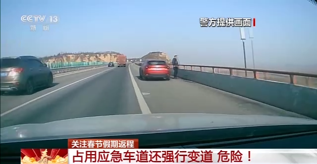 占用应急车道还强行变道,危险!