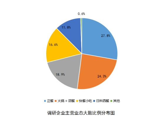 据了解,本次参加调研的企业共计169家,涉及门店数5万余家,涉及品牌总数800余个。其中,正餐企业占比27.8%,火锅企业占比24.3%,团餐企业占比18.9%,快餐小吃类企业占比16.6%,日料、西餐和烧烤企业占比11.8%,其他业态企业占比0.6%。其中,2021年营业收入超过2000万元的企业占比约86%,2021年营业收入超过1亿元的企业占比约69%。协会方面表示,调研数据能够反映餐饮行业大中型企业发展状况,具有一定的典型性和代表性。