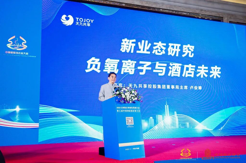 天九共享集团董事局主席卢俊卿发表《新业态研究:负氧离子与酒店未来》主旨演讲