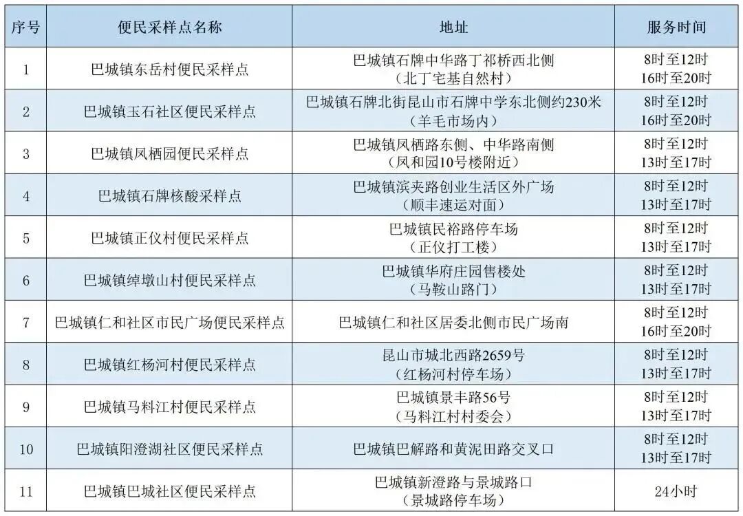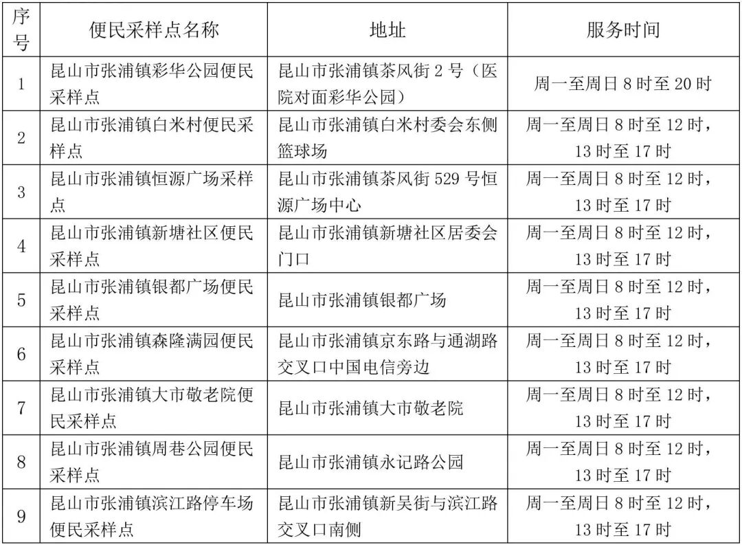 最新便民采样点发布!昆山多项公告