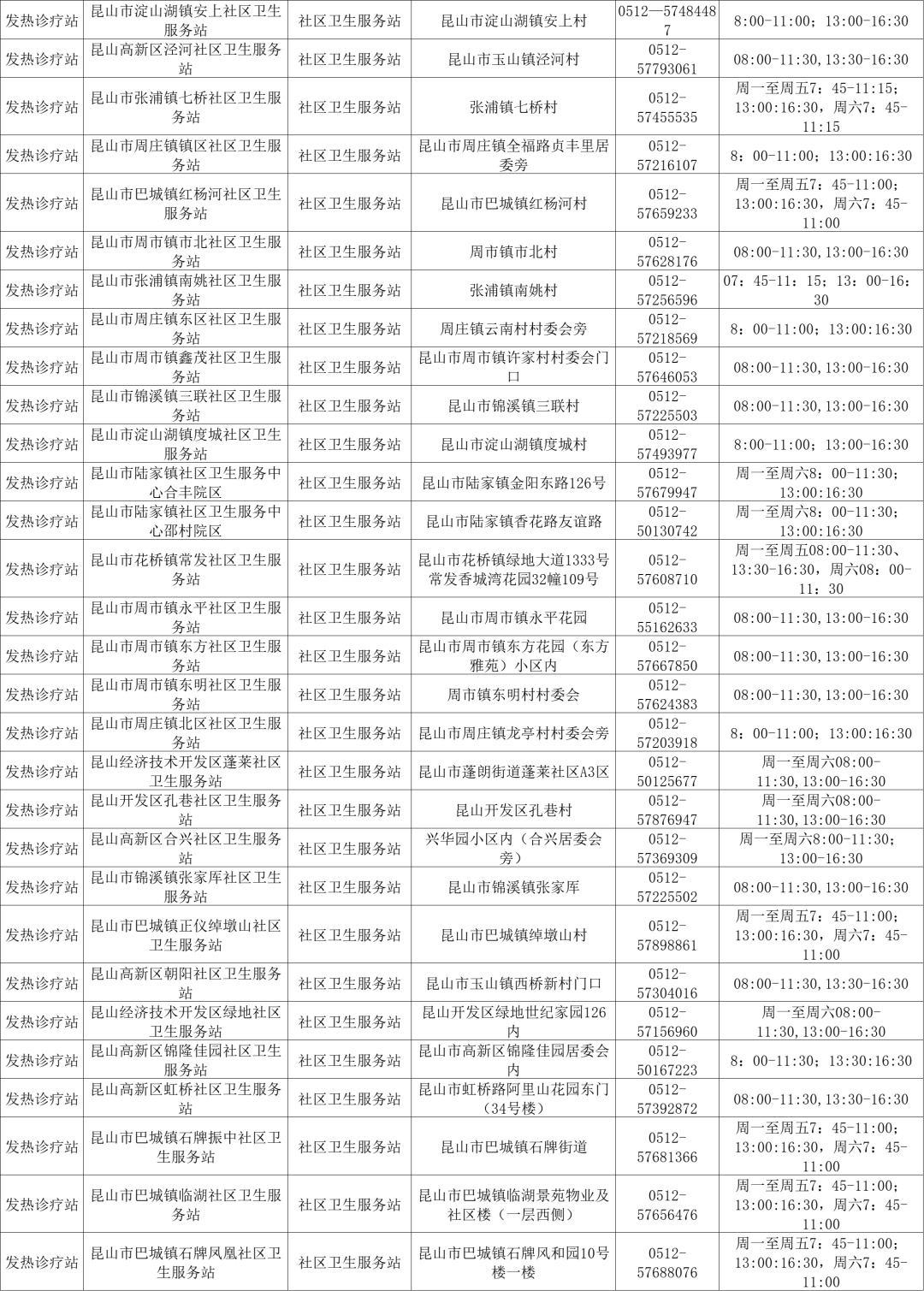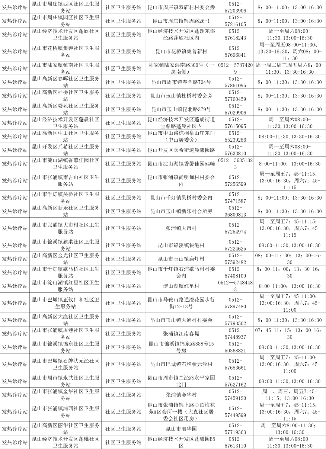 昆山最新发热门诊信息公布