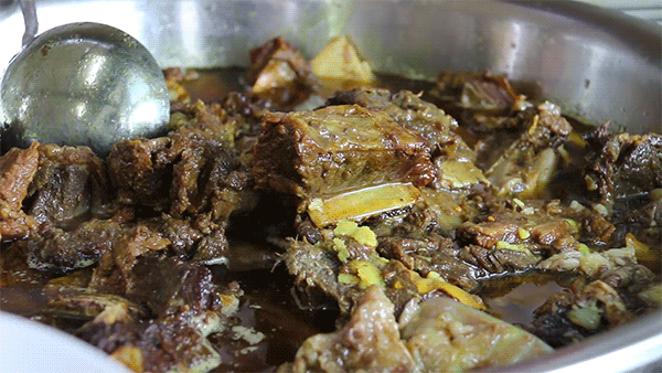 老板黄成财祖籍泉州惠安。100多年前,爷爷背井离乡去南洋闯荡,回来后改良本地牛肉的做法,加入了一些南洋元素。用的是两三岁的黄牛肋骨,放咖喱、当归、姜等香料大锅焖煮数小时。