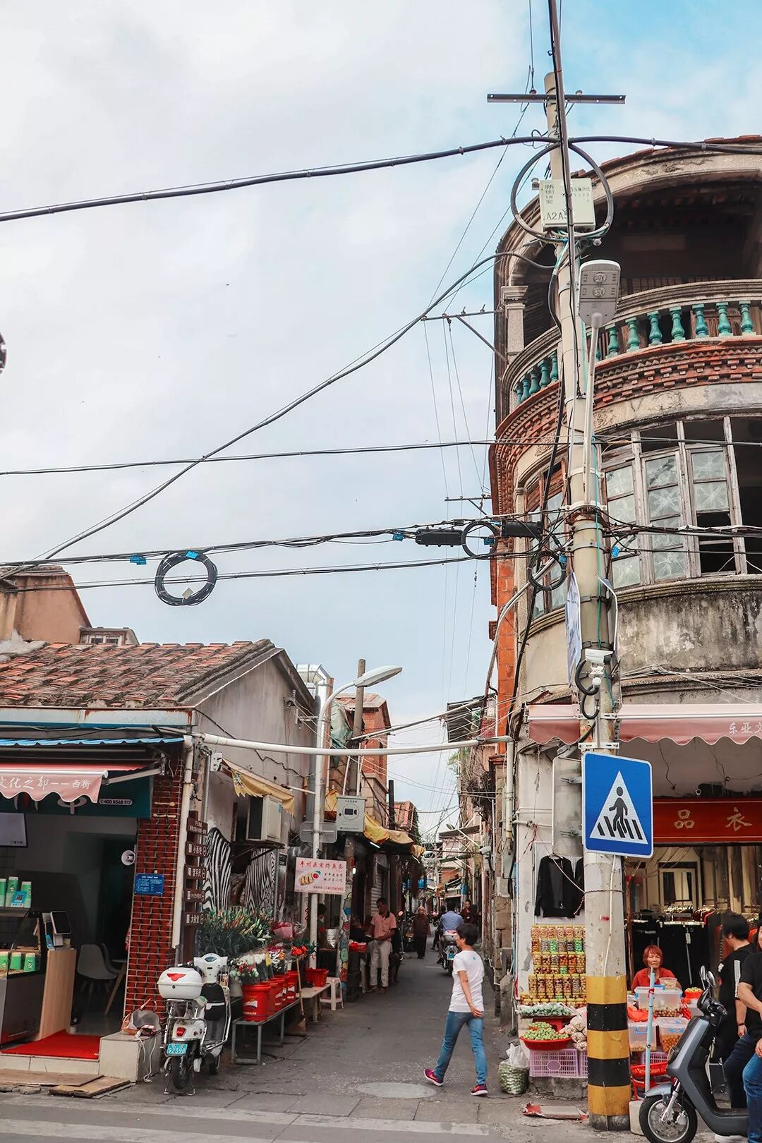 旅人们游走在骑楼之间,信客在香火弥漫中祈祷,孩子们嬉闹着上下学,老人们在广场上晒着暖阳,沿街商贩的辛勤叫卖……