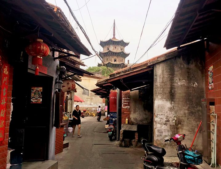 其实不必特别安排景点,在老城逛逛就很有惊喜。比如这个抬头就能在巷子里找到的定心塔。