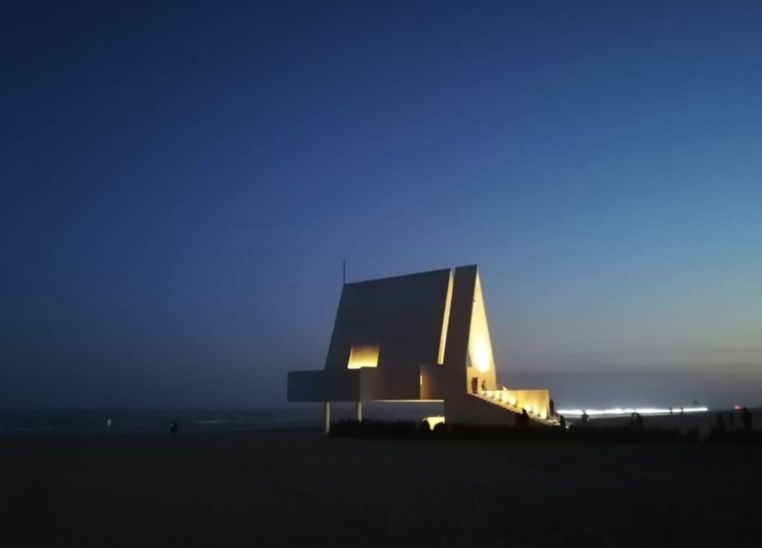 阿那亚在2012年的时候,还是一个烂尾到人人嫌弃的楼盘。海边一片荒芜,几处残瓦断墙的小房子。后来,它们在海滩上建了2个艺术地标,孤独图书馆和阿那亚礼堂。这里一下子就火了。很多人说阿那亚的C位也许是海边图书馆,不过我觉得还是应该把C位给「阿那亚海边礼堂」。