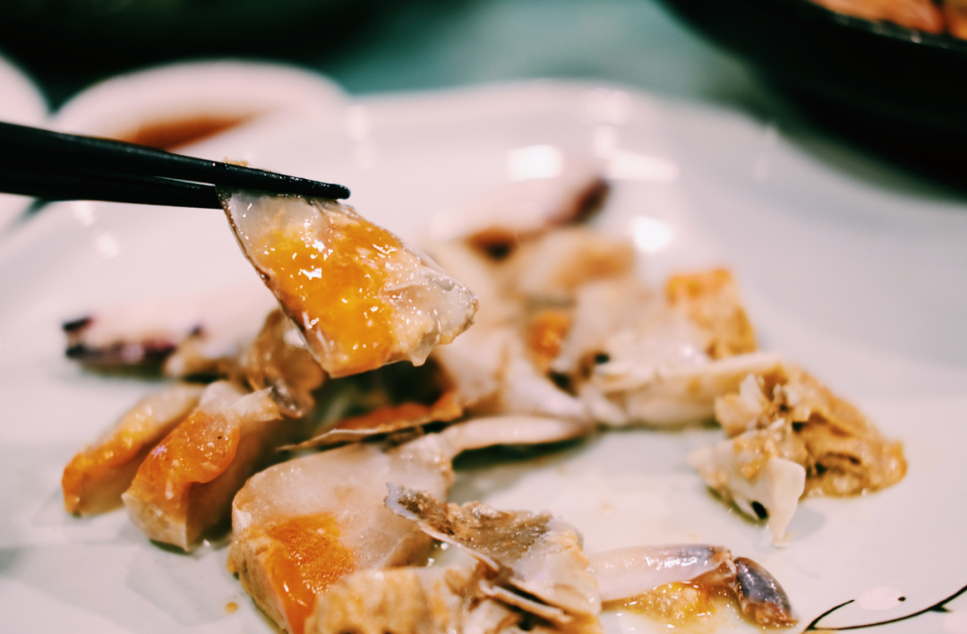 宁波的童谣里,有一句是这么唱的:“红膏呛蟹咸咪咪,大汤黄鱼放咸齑”。不管是日常吃饭,还是摆家宴,又或者是下馆子,红膏呛蟹都必须有占个位置。当然,酱青蟹其实和呛蟹有所区别,口感类似,但制作方式不同,前者用的是酱油腌制,后者用的是盐水。酱蟹吃一口下去是生猛的鲜,口感滑滑的,很让人惦记。吃完后你还还要嘬嘬筷子,品品它留下的余味。![]()