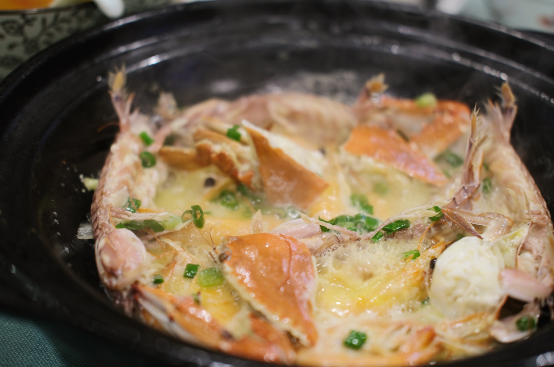 你可以来个蟹煲,顺便拼个皮皮虾。端上来的时候,煲里的汤汁还在沸腾,鲜味不仅藏在肉里,还在汤汁里,每喝一口鲜直击大脑。![]()